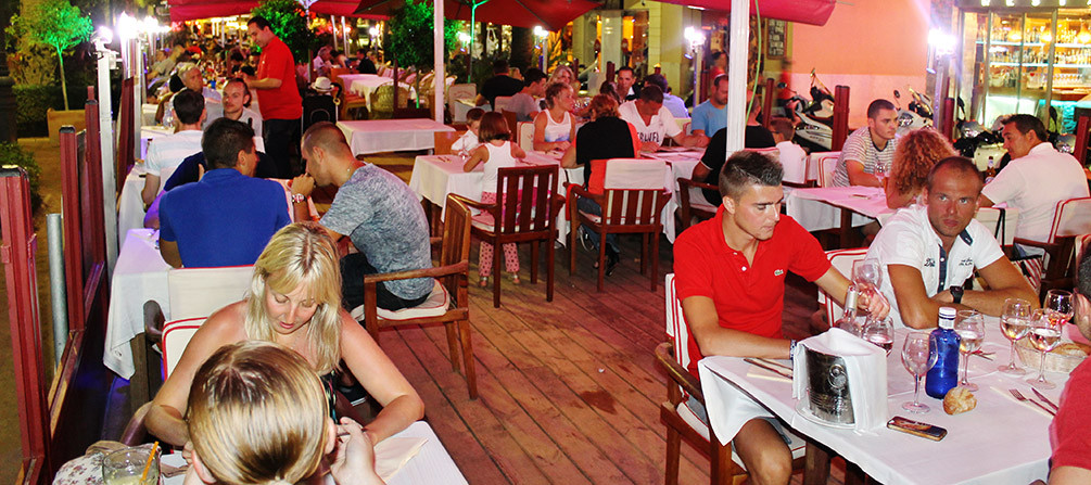 En nuestro restaurante se puede disfrutar de una cocina mediterránea con sus especialidades en ensaladas variadas, carnes de Girona, cochinillo lechal al horno, espalda de cordero, pizzas, paellas, arroces, fideuas,pescados y mariscos frescos. Tenemos una buena carta de vinos con sus típicos postres caseros. También podrá disfrutar de unas buenas copas (gin tonics, whiskys y cocteles) después de una buena comida en un ambiente relajadocon vistas al mar.